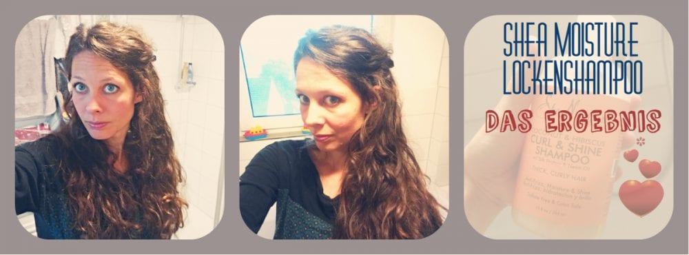 Für die Fotos zur Dokumentation des Testergebnisses habe ich keine weiteren Lockenprodukte verwendet. Da die Haare oben etwas platt waren, habe ich das Deckhaar etwas nach hinten gesteckt. Das Lockenergebnis wurde noch besser als ich das Shea Moisture Shampoo mit einem leichten Conditioner zusammen verwendet habe (Mythic Oil Conditioner von L’Oréal).