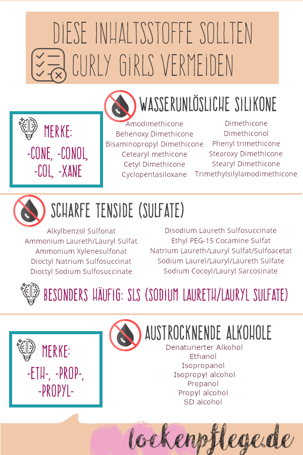 Die Produkte für die LOC Methode sollten im besten Fall silikonfrei sein, da sich sonst starke Ablagerungen auf den Haaren bilden. Auch austrocknende Alkohole sollten bei Produkten, die länger in den Haaren bleiben wenn möglich vermieden werden (hier die Liste von Inhaltsstoffen, die für Locken nicht so gut sind).
